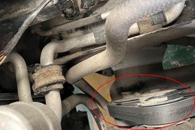 再来看看机舱内部,首当其冲的肯定就是发动机的检测了,发动机外部皮带磨损较为严重,这磨损程度还是赶紧换吧。不过从发动机附近来看,车主只是简单的清理了一下机舱表面,并不是去找人专门的打扫机舱,不然机舱内不会那么脏……
