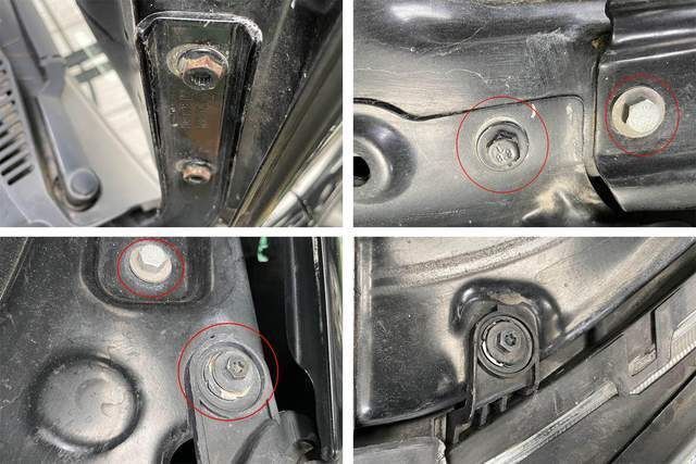 首先检查了外部覆盖件的情况,机盖、左右翼子板、两侧的大灯以及前保险杠都有拆装的痕迹。简单的来说就是外部覆盖件能拆的基本上都拆过,具体是什么原因拆的三金还无法确定,得等到进一步的检测才能够去判断。